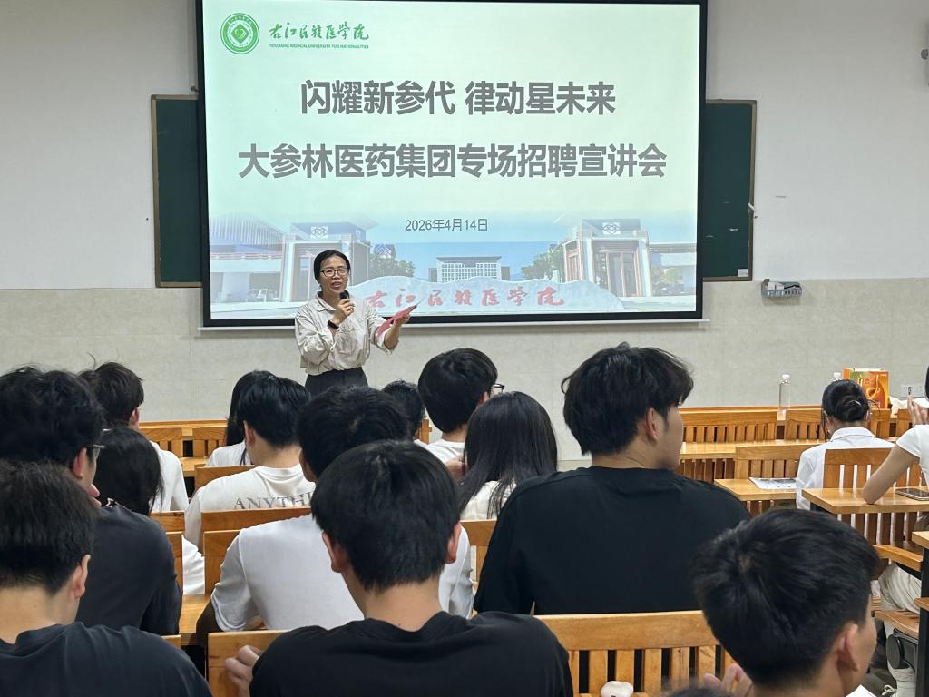 4月14日,药学院在百东校区守正楼C-103教室成功举办大参林医药集团专场招聘宣讲会。学院党委副书记文志娟、企业代表农浩及相关负责人出席,103名药学院学子参加本次活动。